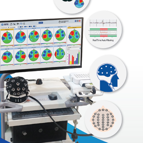 우리 뇌의 전기적인 신호인 뇌파를 분석하여 뇌의 비정상적인 과활성화 및 저활성화 부위에 대한 정량적인 평가를 통해 뇌과민증후군 상태를 파악합니다.